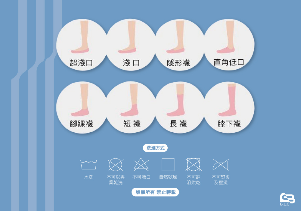 ● 長度至腳裸上方(短襪)