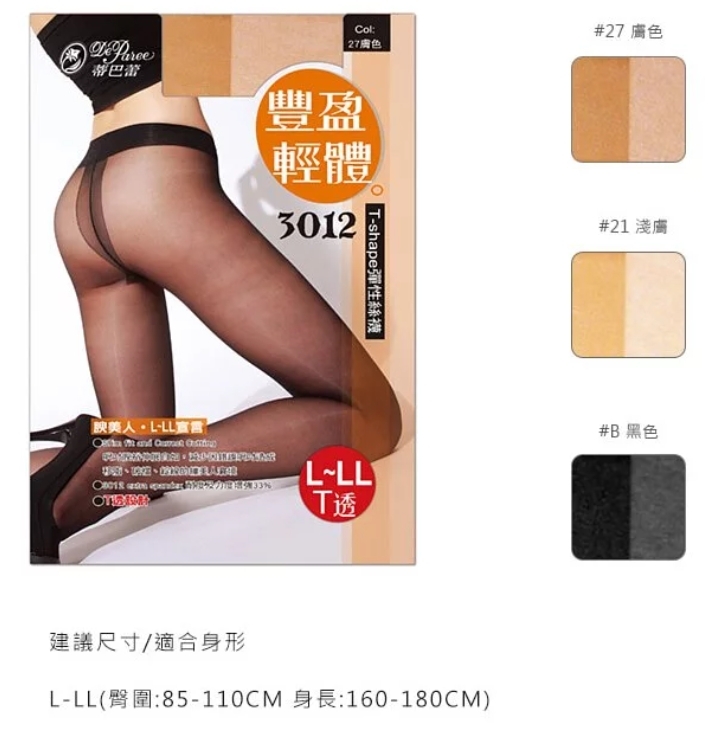 蒂巴蕾 豐盈輕體-T透 3012 L-LL彈性絲襪