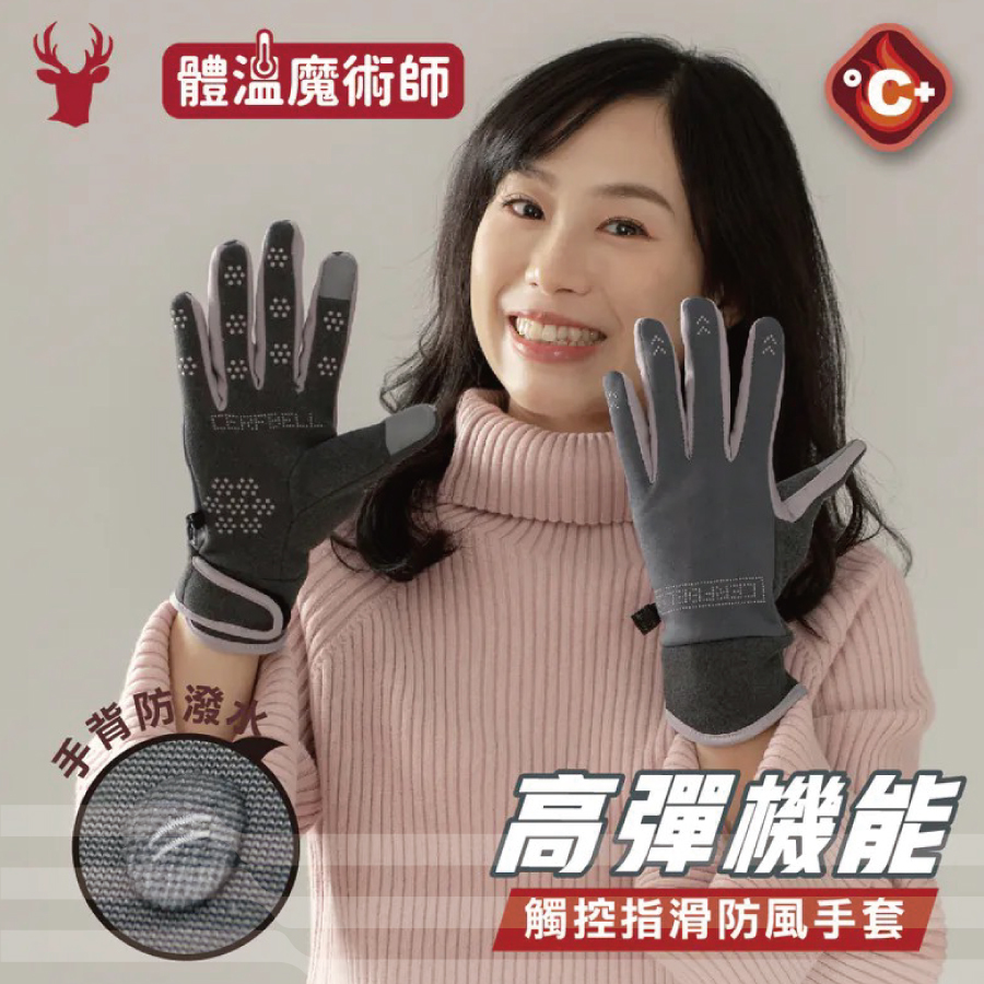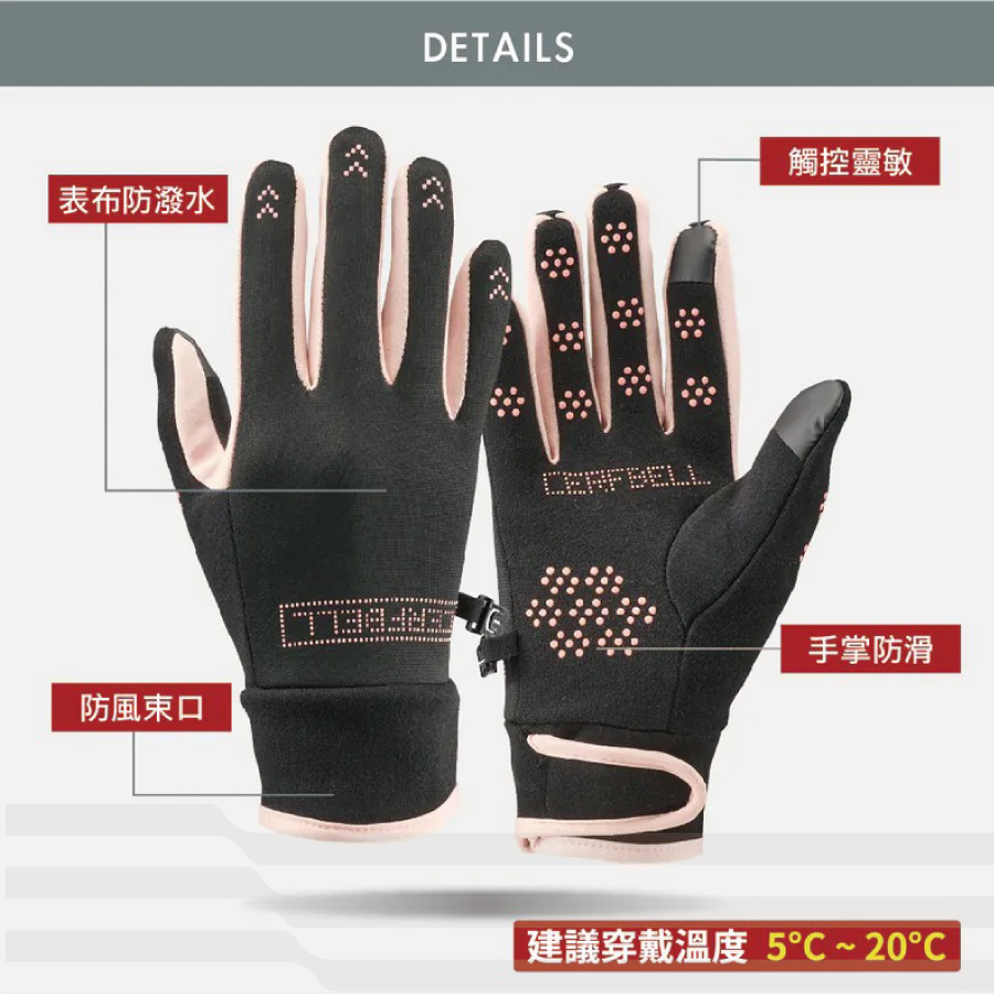 ● 高彈布料+防風設計+掌心止滑+靈敏觸控+透氣舒適