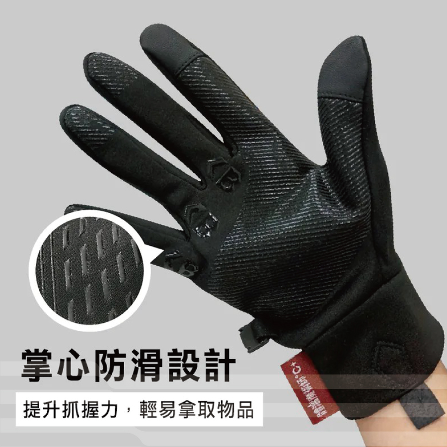 ● 高彈面料+防風設計+掌心止滑+靈敏觸控功能