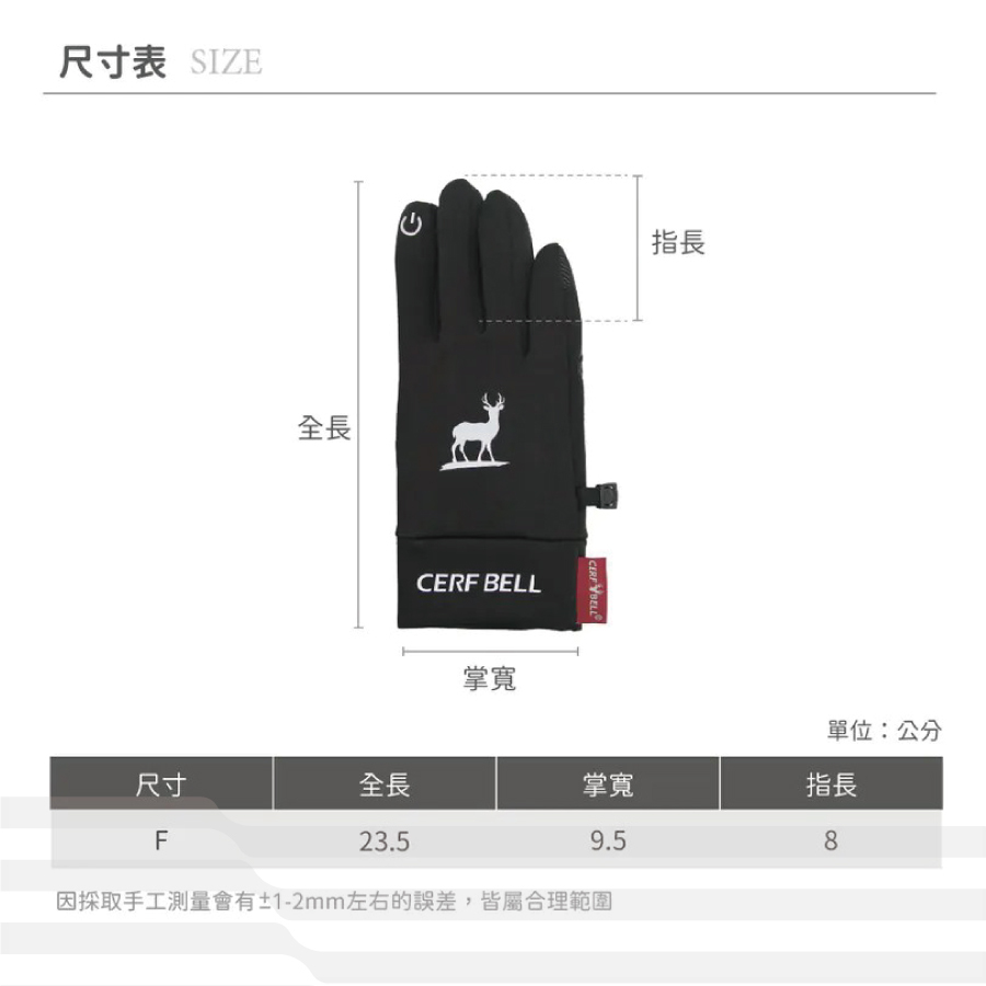 ● 尺寸:F (全長:23.5 / 掌寬:9.5 / 指長:8cm)