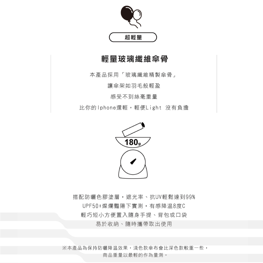 ● 材質:【傘布】聚酯纖維 【骨架材質】玻璃纖維