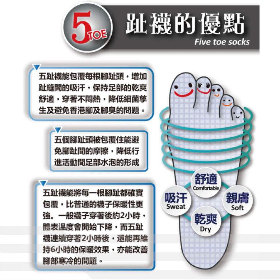 ● 趾縫間保持乾爽舒適