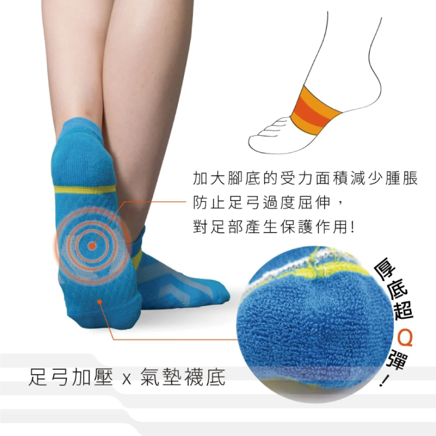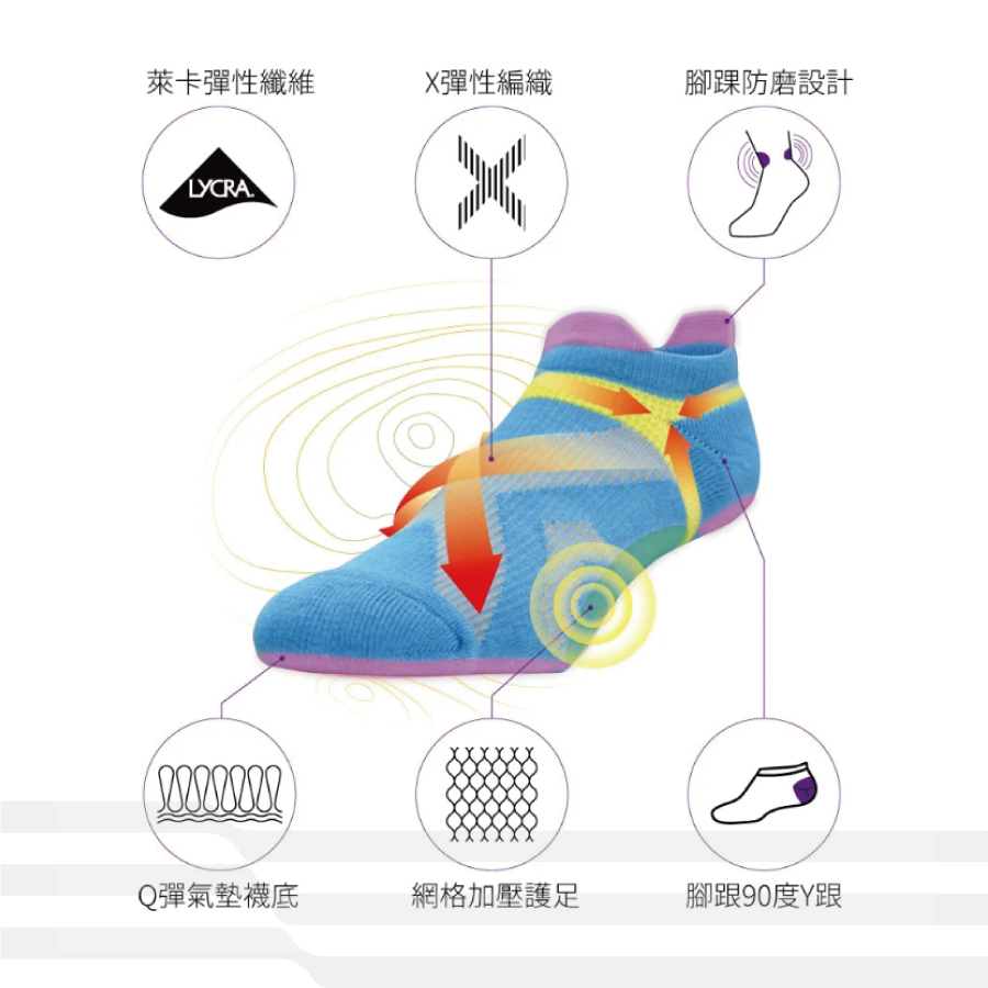● 特殊X型彈性編織,足弓加壓支撐