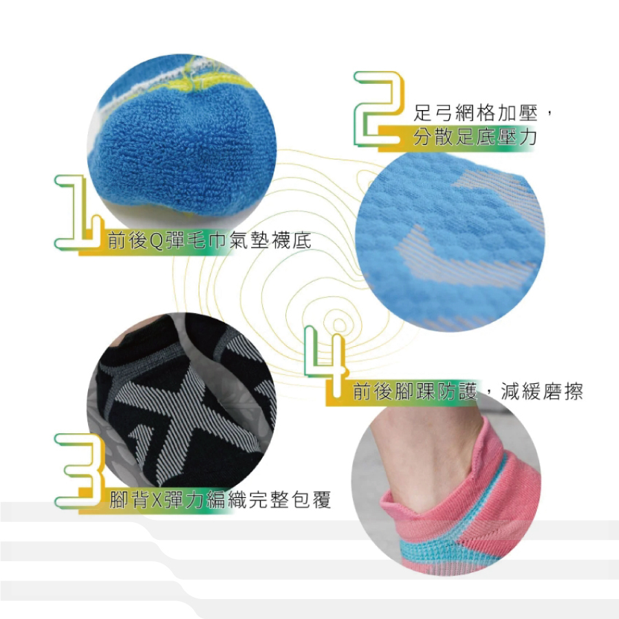 ● 3倍毛圈網格空氣織法,襪底升級強韌