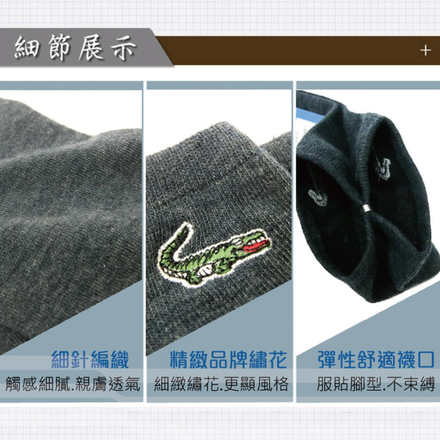 台灣製鱷魚細針加大1/2休閒襪CR21 (8022)