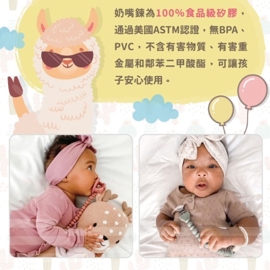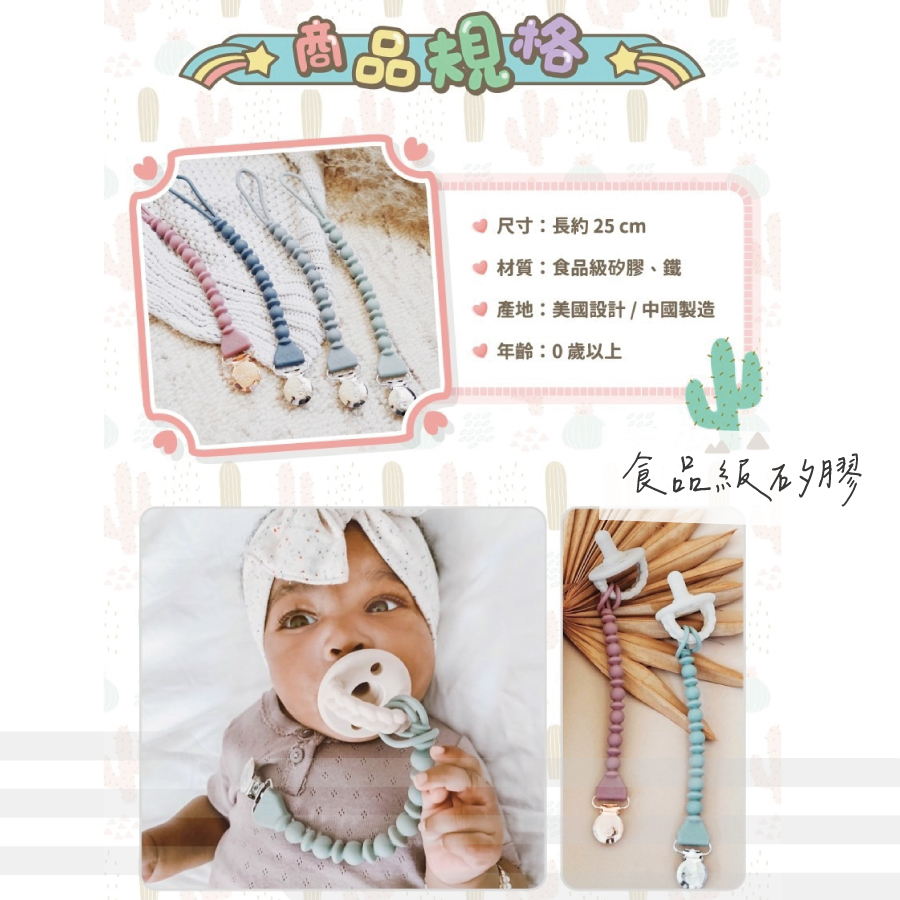 ● 100%食用級矽膠奶嘴鍊,柔軟好啃咬