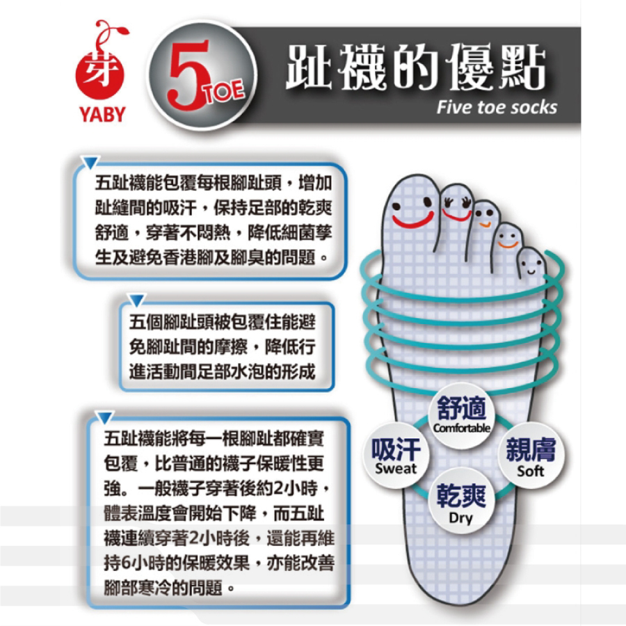 ● 五趾分開 預防香港腳、腳臭